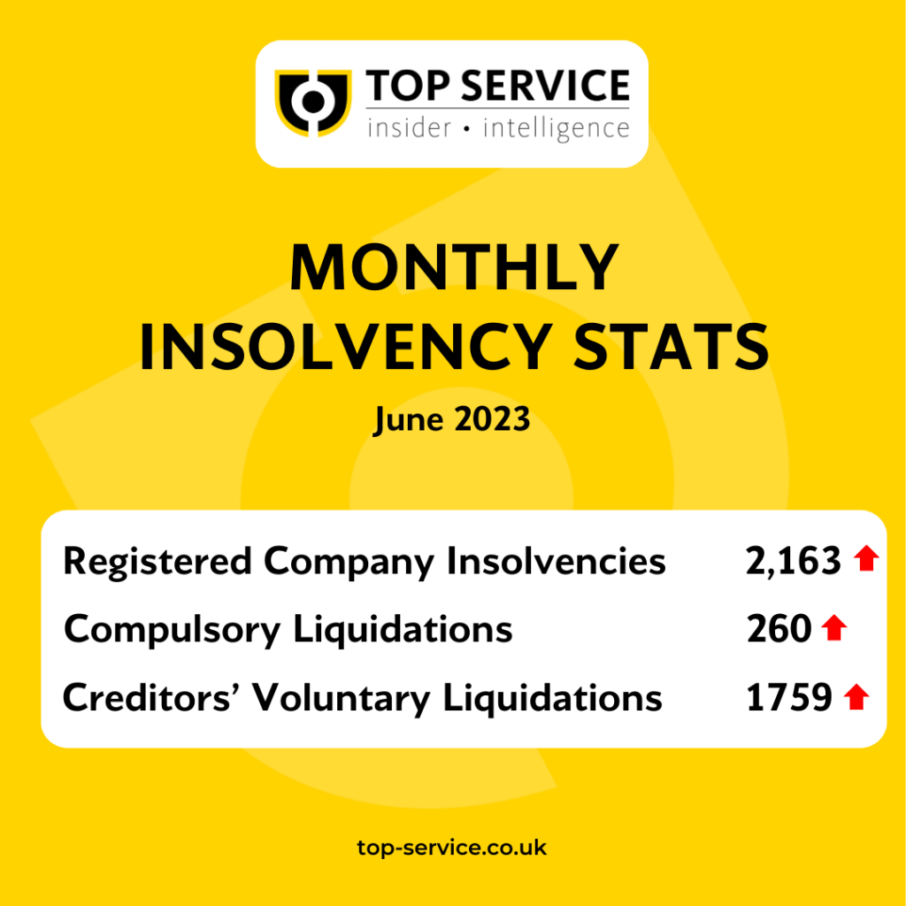 The number of registered company insolvencies in June 2023 was 2,163, 27% higher than in the same month in the previous year (1,698 in June 2022). This was higher than levels seen while the Government support measures were in place in response to the coronavirus (COVID-19) pandemic and also higher than pre-pandemic numbers.