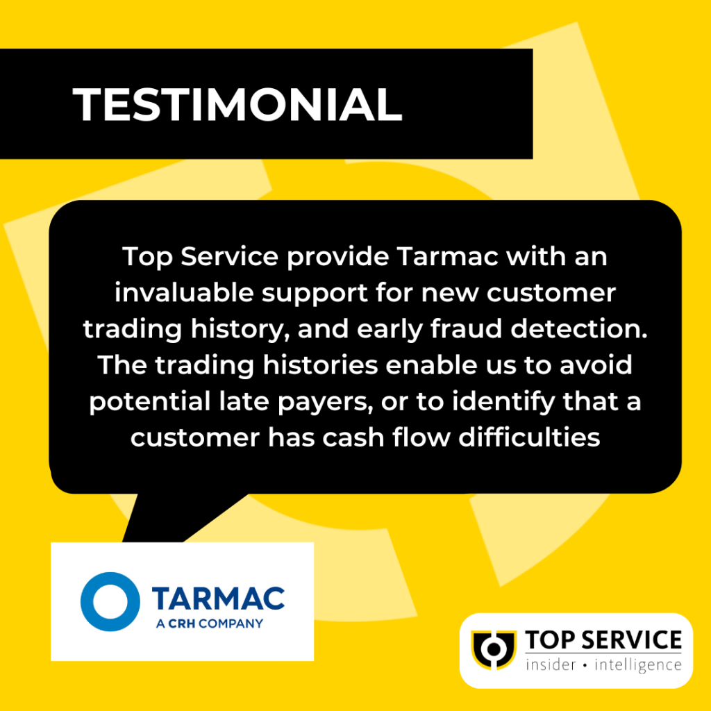Top Service provide Tarmac with an invaluable support for new customer trading history, and early fraud detection. The trading histories enable us to avoid potential late payers, or to identify that a customer has cash flow difficulties