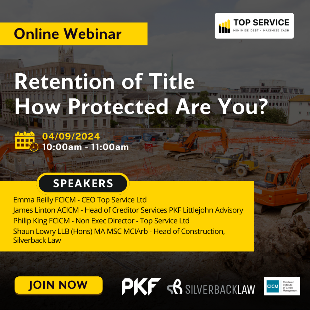 Emma Reilly FCICM – CEO, Top Service Ltd. With 23+ years of credit management experience, Emma leads a team providing tailored solutions to the UK construction sector.